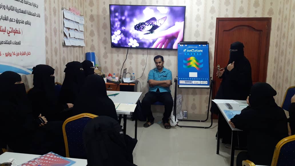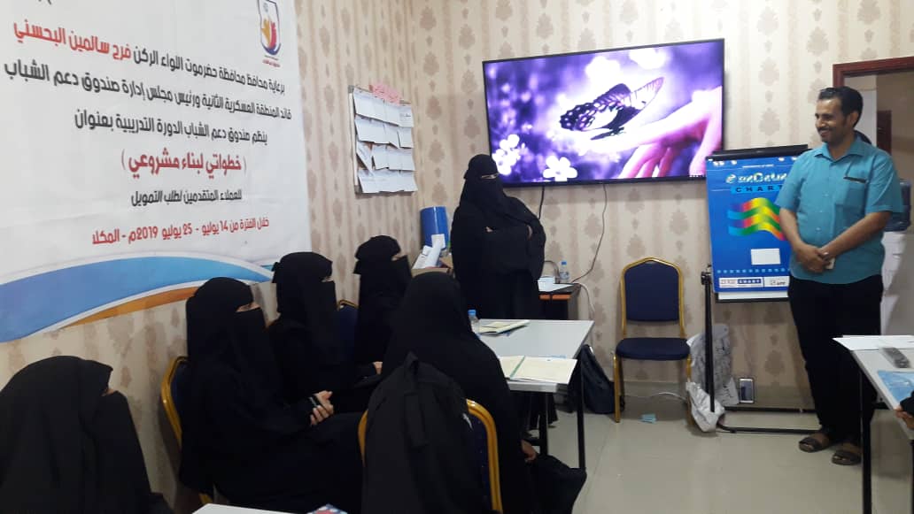 حضر اللقاء ياسر عوض بامدحج مدير البرامج والمشاريع لصندوق دعم الشباب منسق الدورة والمدربة سميحة الحنشي.